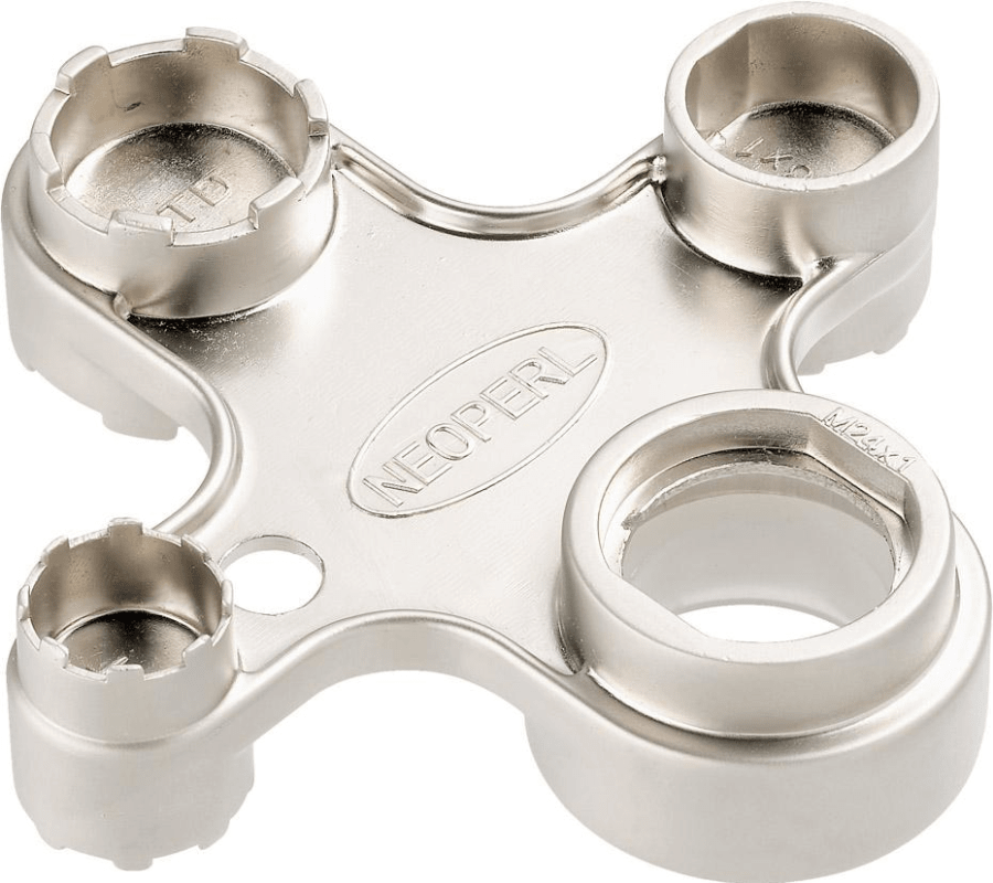 Strahlreglerschlüssel• Vernickelt • Passend für Strahlreglergrößen M18 x 1 AG; M22 x 1 IG; M24 x 1 AG und M28 x 1 AG sowie für CACHÉ®-Strahlregler in den Größen TT, TJ, JR und STD • Für Montage und