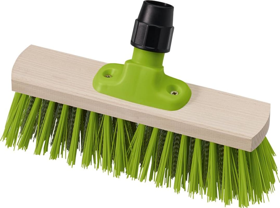 Elaston-Borsten mit Stahldraht-Einlage. Zum gründlichen Entfernen von hartnäckigen Verschmutzungen, wie zum Beispiel angetrocknetes Laub, verkrustete Erde oder Moos. Buchenholz-Körper mit Prestige-Halter.