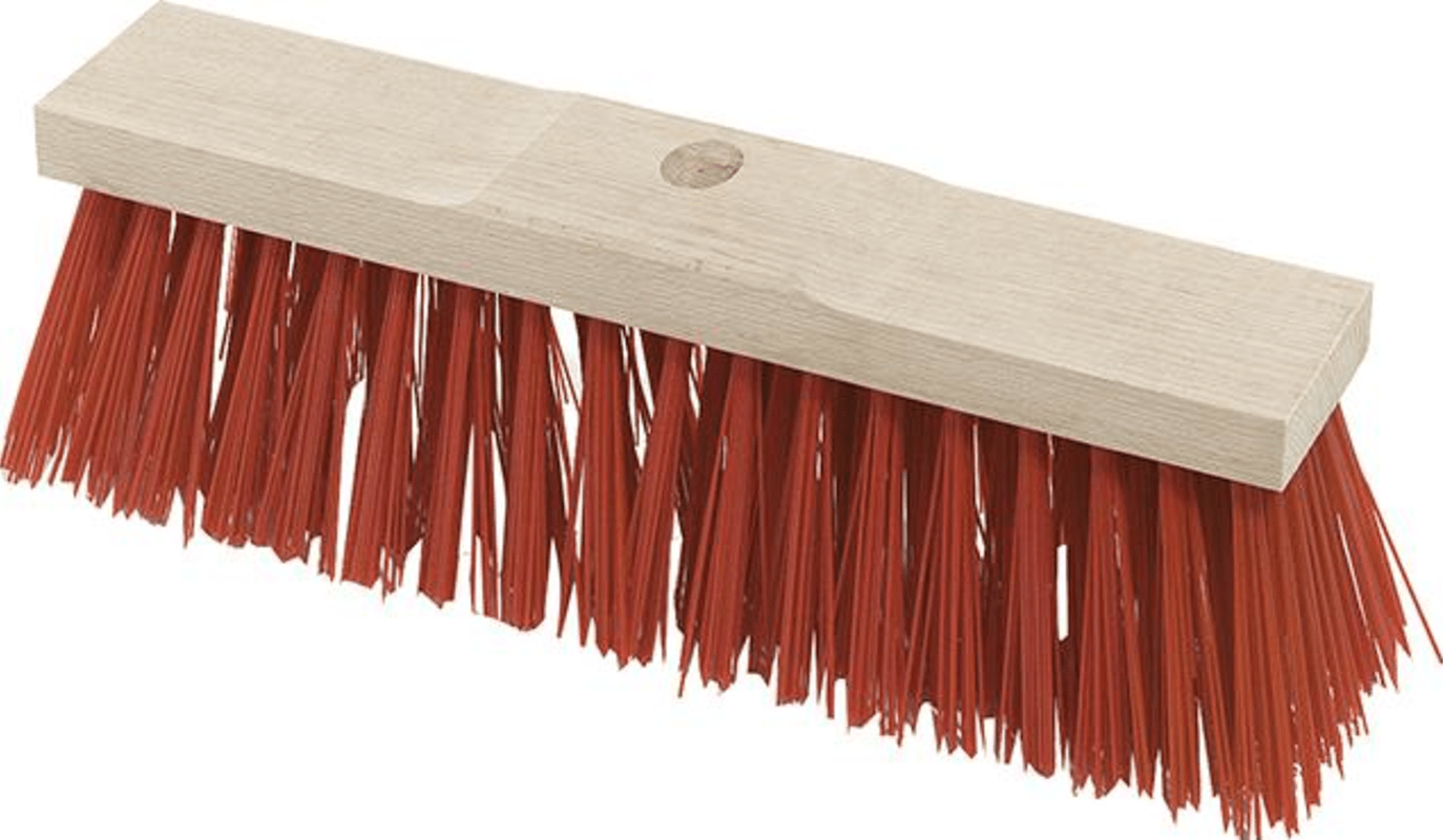Straßenbesen Elaston- Rot, glatt- Besonders kräftig- Langer Materialschnitt- Sattelholz mit Stielloch- Für Stiele Ø 28 mm mit Konus