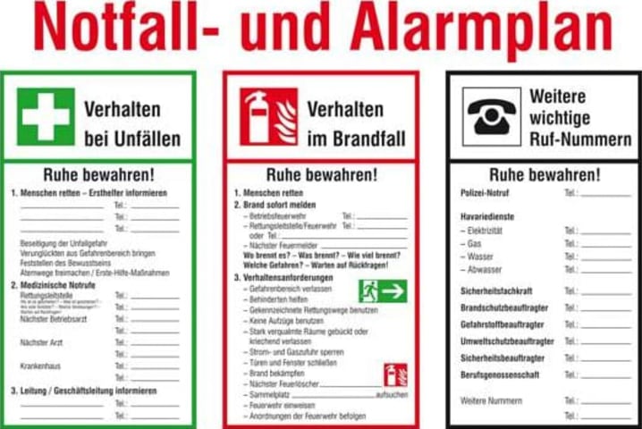 Notfall- und Alarmplan • Material: Kunststoff (Hart-PVC) • Geeignet für die dauerhafte Kennzeichnung