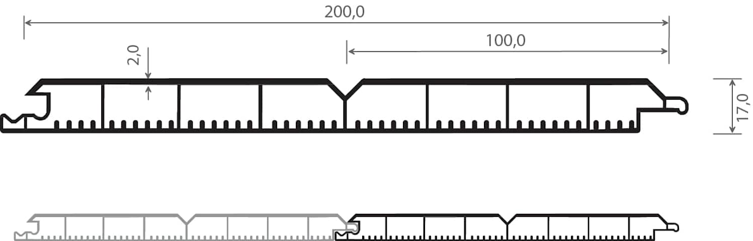 Nut- u. Federprofil 200x17 mm Lg. 6,00 m V-Fuge, zweiseitig foliert, verstärkt 436 1016 ALUX GRAUALUMINIUM [102]