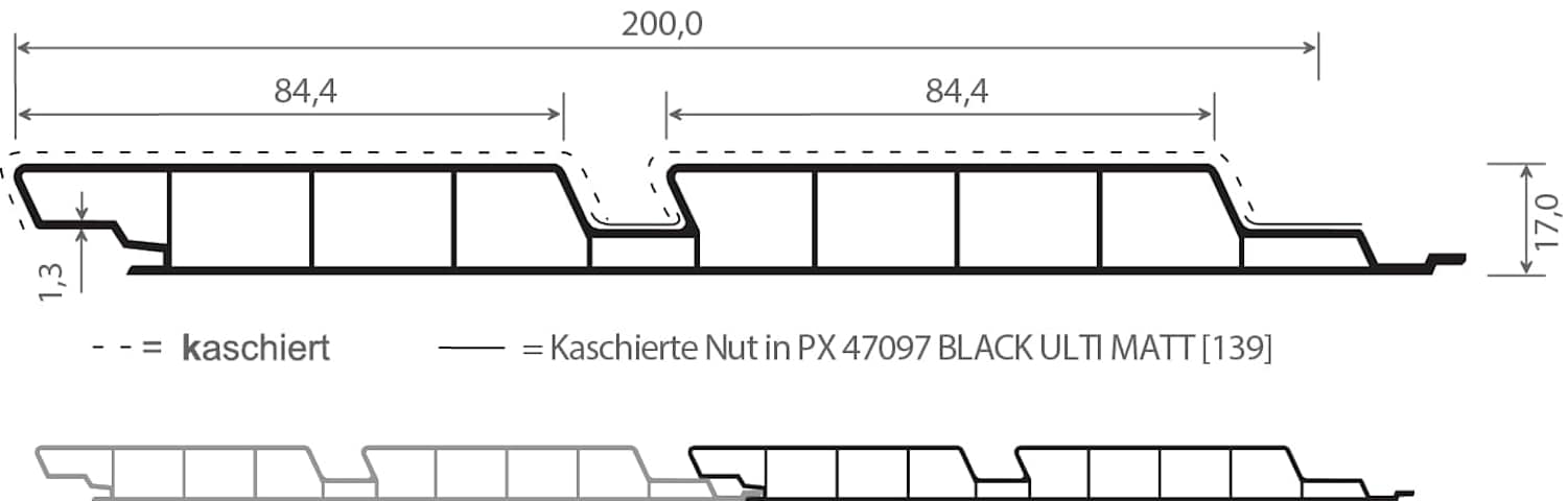 Nut- u. Federprofil 200x17 mm Lg. 6,00 m foliert, Rhombus 701505-167 SCHIEFERGRAU [54]