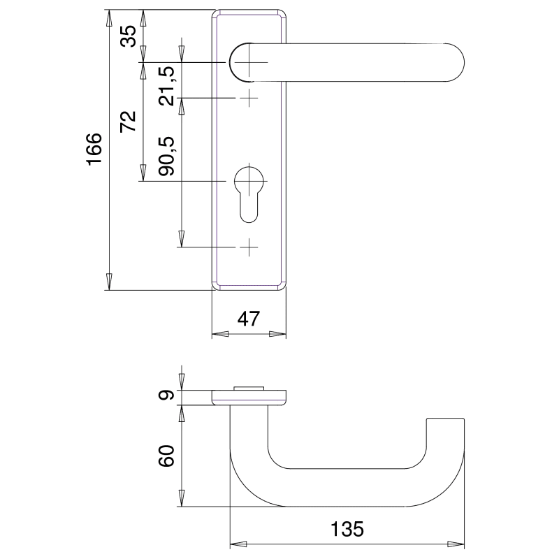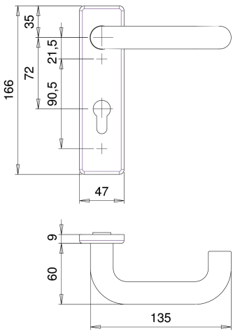 FS-Kurzschild-Drückergarnitur PZ, Nylon.