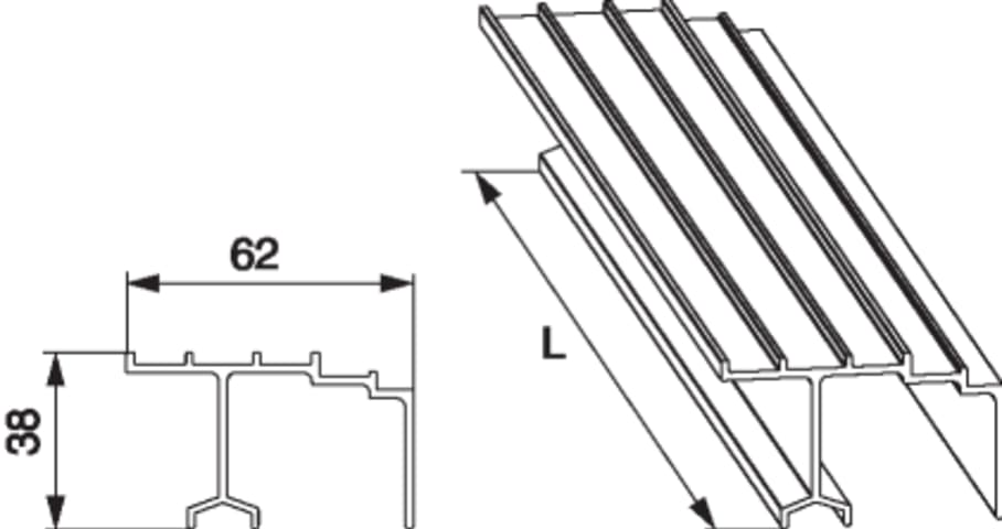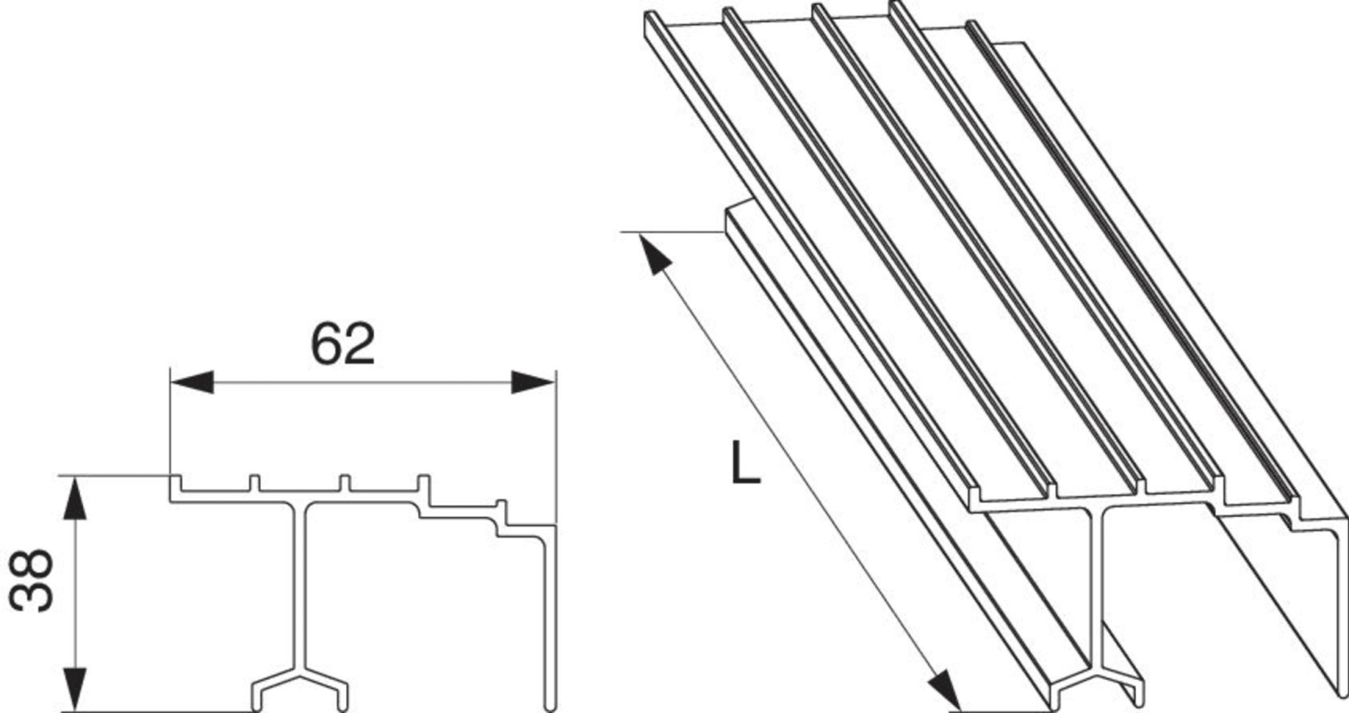OBERE FÜHRUNG HS MIT BLENDE FLÜGELPROFIL STÄRKE 68 MM L=2.500MM SILBER, N19913