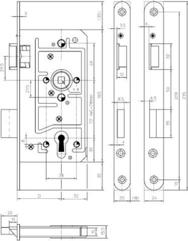 Objekt-Einsteckschloss Klasse 3 + 4 65-WC/55-R-24-A-41