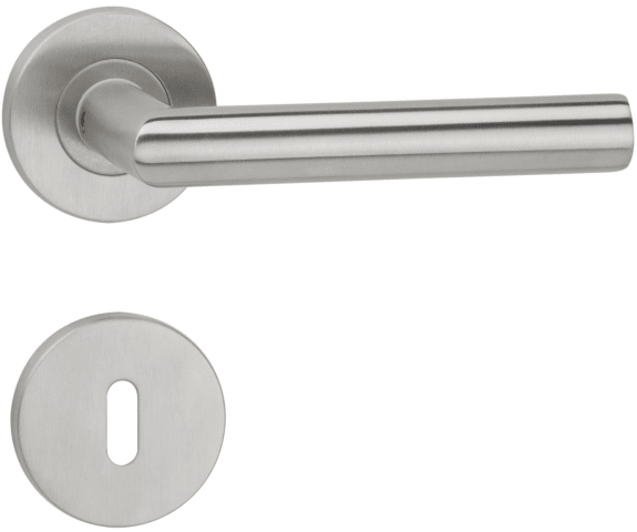• Klasse 4 nach DIN EN 1906 • Drücker fest/drehbar gelagert mit Hochhaltefeder • Metall/Kunststoff-Unterkonstruktion mit Kunststoffclip für sicheren Halt der Deckrosetten • Verdeckte Schraubbefestigun