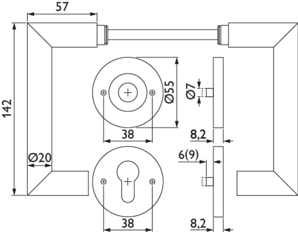 • Drücker fest/drehbar gelagert mit Hochhaltefeder