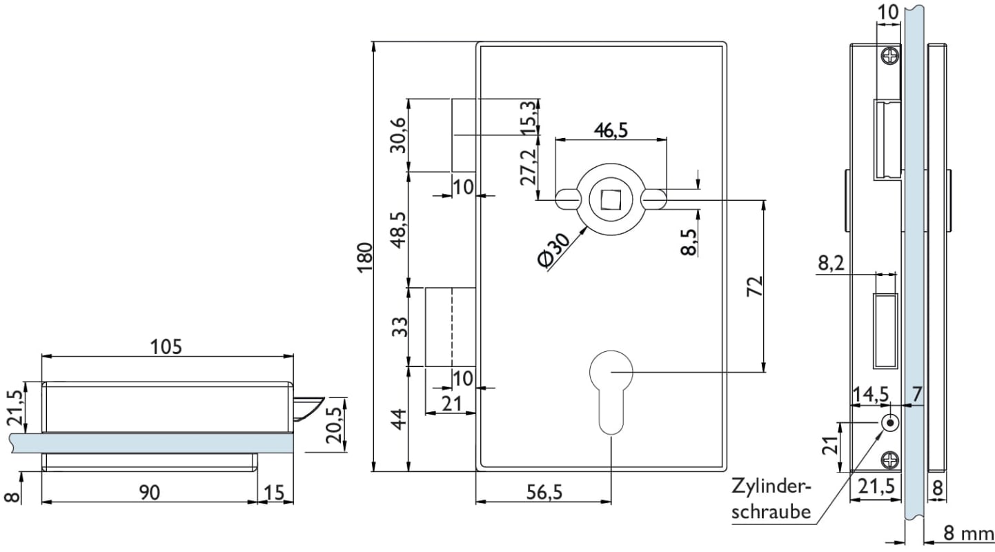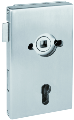 Glastür-Schlosskasten 6053-R PZ - Molina, PZ gelocht - DIN links, vorgerichtet für Drückerrosetten, Oberfl. 60 (Edelstahl matt)