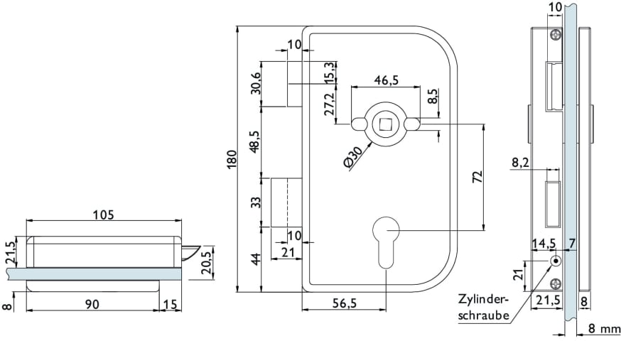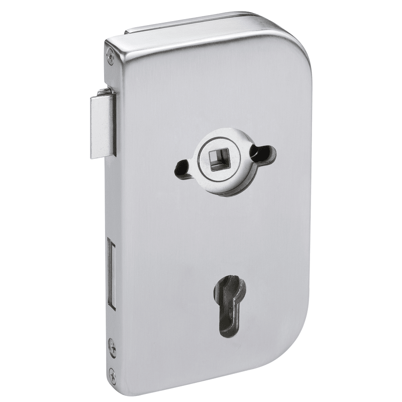 Glastür-Schlosskasten 6033-R PZ - Roma, PZ gelocht - DIN rechts, vorgerichtet für Drückerrosetten, Oberfl. F1 (silberfarben eloxiert)