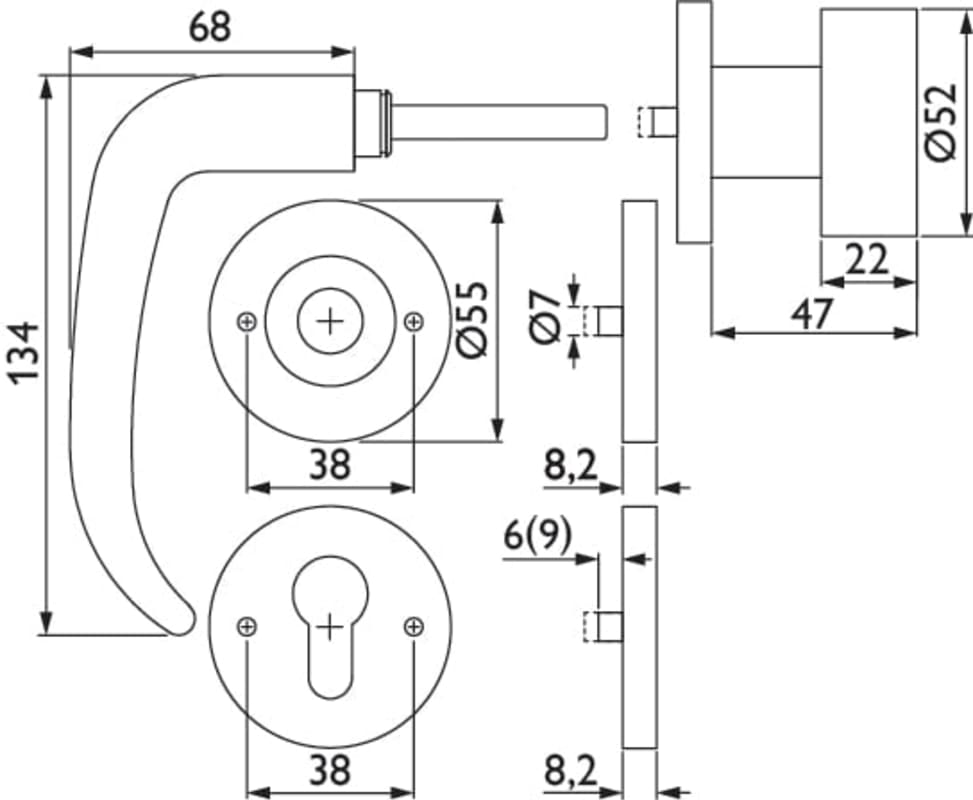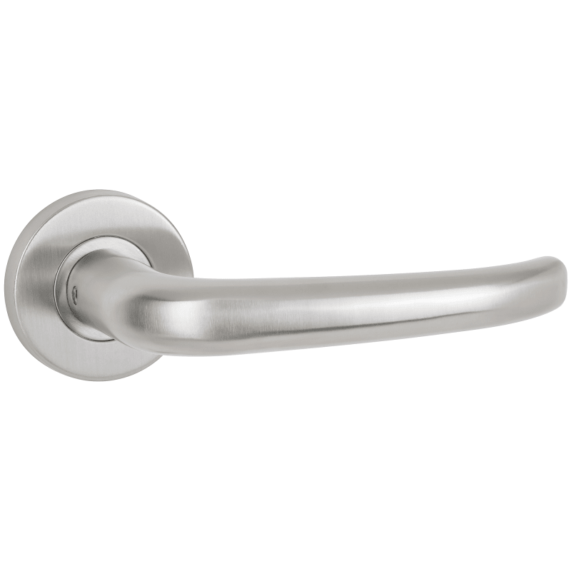 ZT - Drückerpaar 1806 BASIC 06, mit Rosetten 2073 M / Klasse 4, ohne Schlüsselrosetten, f/d m. Rückholf. / Metallunterk. Tst. 37 – 48, Oberfl. 60 (Edelstahl matt)