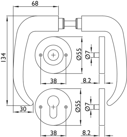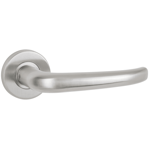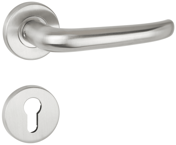 ZT - Drückerpaar 1806 BASIC 06, mit Rosetten 2073 M / Klasse 4, ohne Schlüsselrosetten, f/d m. Rückholf. / Metallunterk. Tst. 37 – 48, Oberfl. 60 (Edelstahl matt)