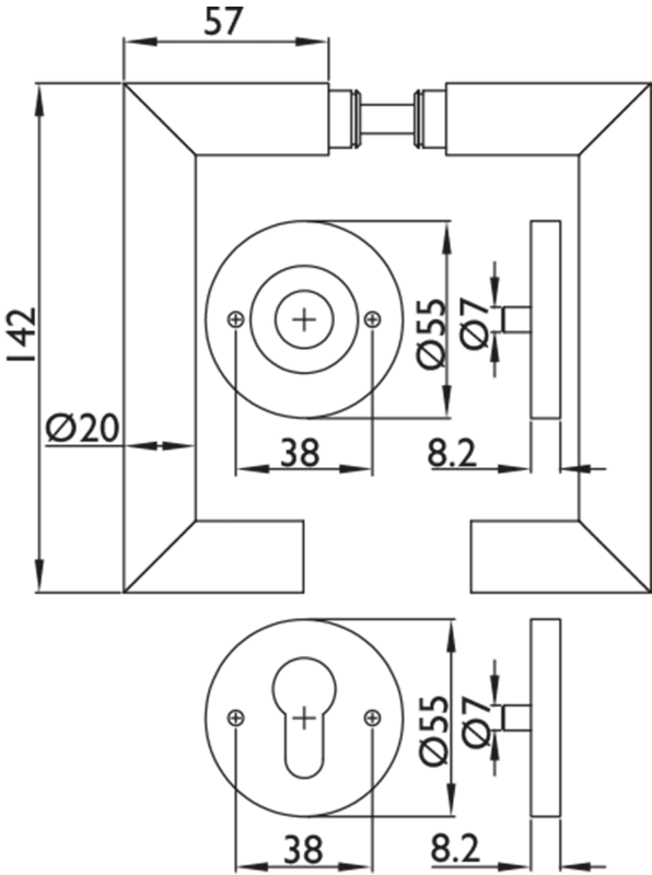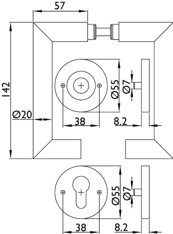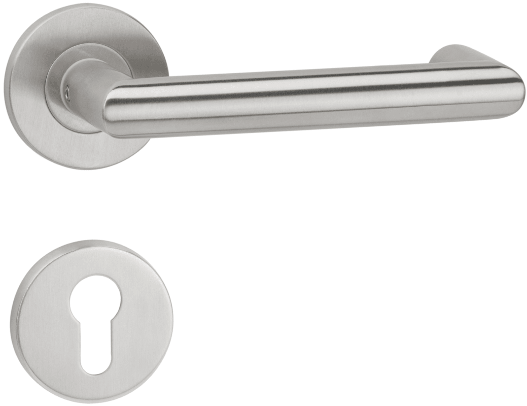 ZT - Wechselgarnitur 1808 BASIC 08, mit Rosetten 2073 M / Benutzerkategorie 4, Ausf.: PZW - mit festem Knopf 3127, mit Rückholfeder - Din Links Tst. 37-48, Oberfl. 60 (Edelstahl matt)