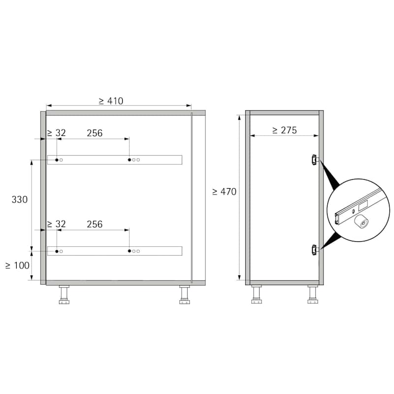 • Komplett mit Rollenführungen• Wahlweise Anschlag links oder rechts• Belastbarkeit 10 kg• Inklusive Distanzscheiben zur Überbrückung des Türeinsprungs• Putzmittelauszug Stahl verchromt bzw. pulv
