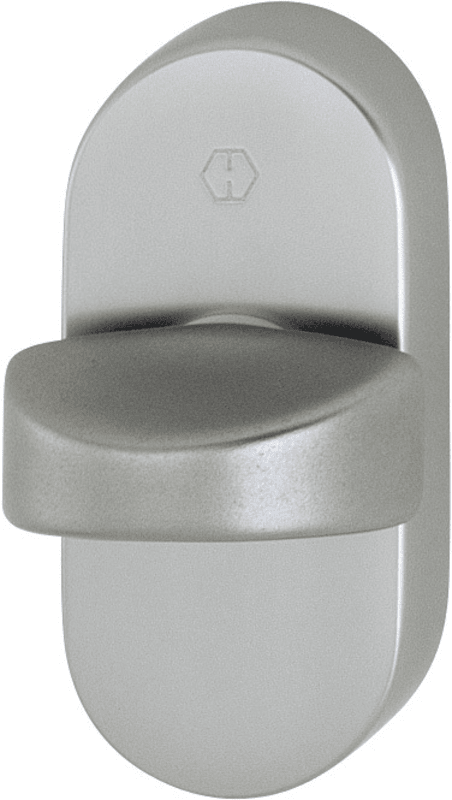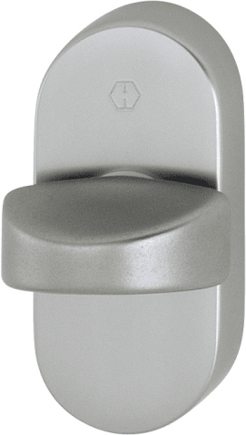 Aluminium-Olive auf Rosette: Zamak-Unterkonstruktion, HOPPE-Vollstift, mit Schrauben, verdeckte, einseitige Befestigung für Aluminium-, Kunststoff- und Holzprofile, für alle Haustür-Verschlüsse mit Zu