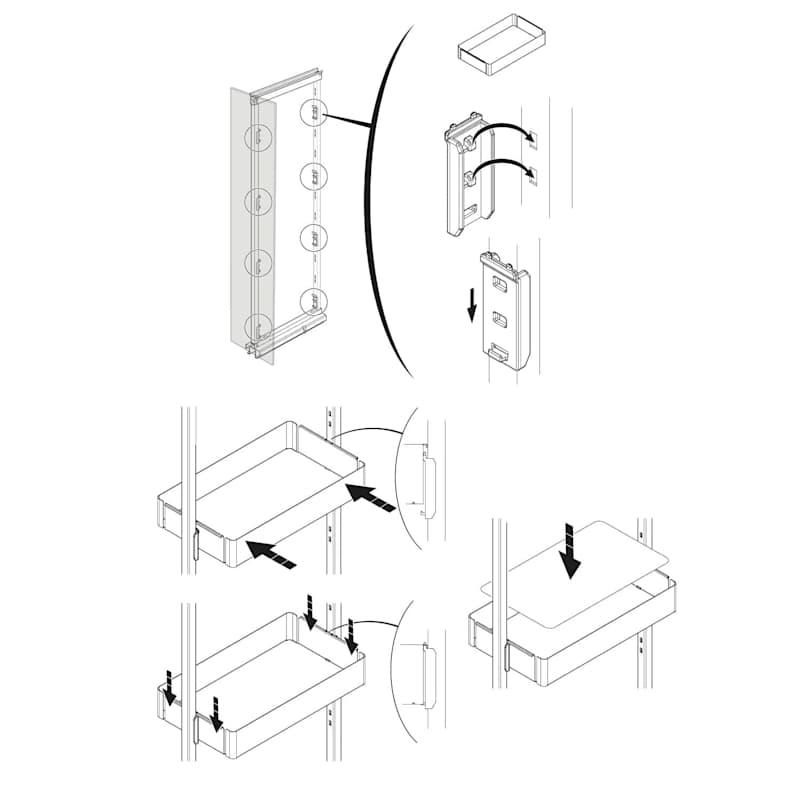 • Zum Einhängen in den Tragrahmen Olona• Stahltablar mit Antirutschmatte• Stahl pulverbeschichtet / Kunststoff anthrazit