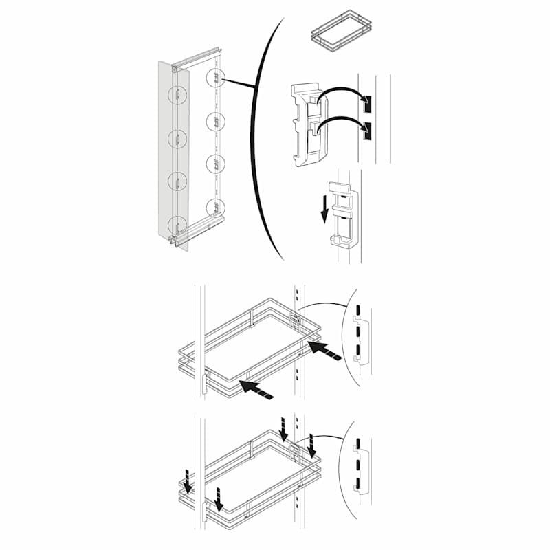 • Zum Einhängen in den Tragrahmen Olona• HDF Boden (5 mm) weiss bzw. anthrazit• Flachdraht-Reling Stahl
