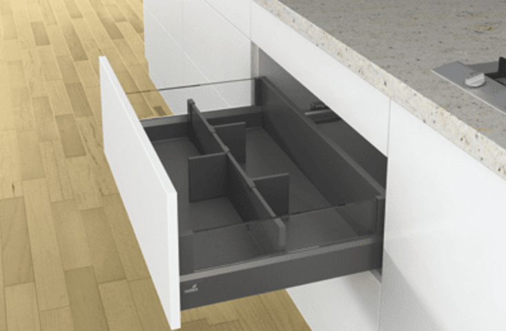 • Profilsystem mit Längsteilern für Front- und Innenauszüge• Einsetzbar mit Schubkastensystem ArciTech ab Nennlänge 300 mm• Abgestimmt auf Standardkorpusbreiten• Der Einsatz einer Antirutschmatte