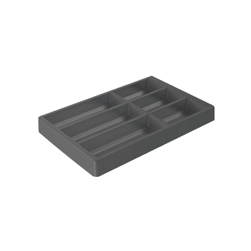 • Kunststoffbesteck- und Utensilieneinsatz • Breitenvariabel einsetzbar ab Korpusbreite 400 mm bei AvanTech YOU bzw. 450 mm bei ArciTech • Ab Korpusbreite 800 mm 2 Stück einsetzbar • Höhe 49 mm • Der Einsatz einer Antirutschmatte wird empfohlen
