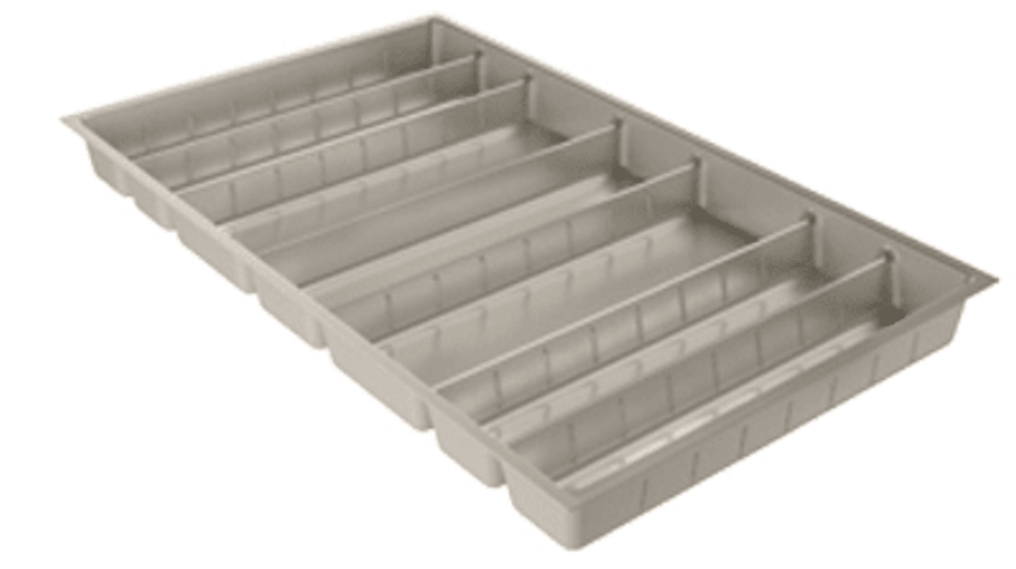 HETTICH, Möbel-Schubkasteninnenorganisation, Korpusbreite: 1000 mm, Werkstoff: Kunststoff, Modell: OrgaTray 570, Modellnummer: 9183315, Farbton: champagner, Nennlänge: 500 mm, Breite: 899 mm, Tiefe: 473 mm, Ausführung: für ArciTech, für Standardkorpusbreiten, Einteilung: Individuell organisierbar, mit variable Trennelemente, Zargenhöhe: 94 mm