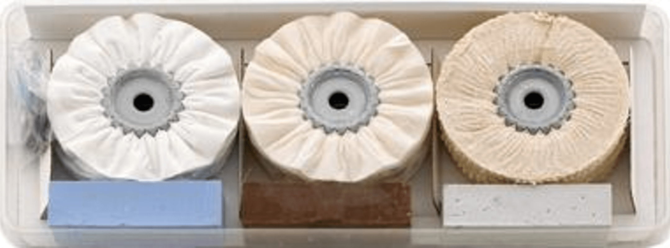Polier-Set, 10-teilig• Für die Oberflächenverfeinerung bei Metall und Acrylglas Lieferung: In Kunststoffbox. Inhalt: 6 Sisal-Tücher Notiflex® 914; Notiflex® 925 3 Polierpasten weiß; blau; braun