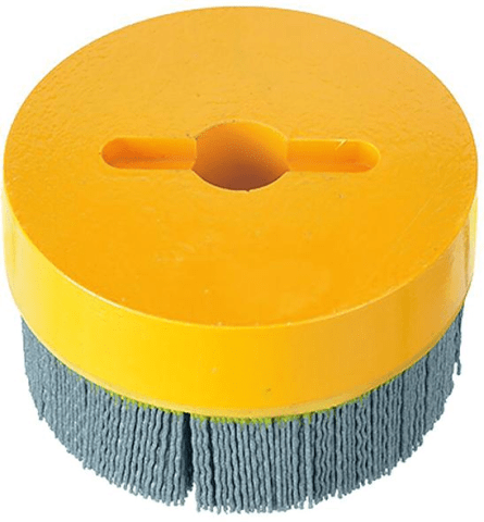 CNC-Tellerbürste• Sehr dichter Vollbesatz aus korndurchsetzten, besonders biegesteifen und abriebbeständigen Polyamidfäden • Bohrung mit Doppelkeilnut zur direkten Aufnahme auf Kombifräsdornen und