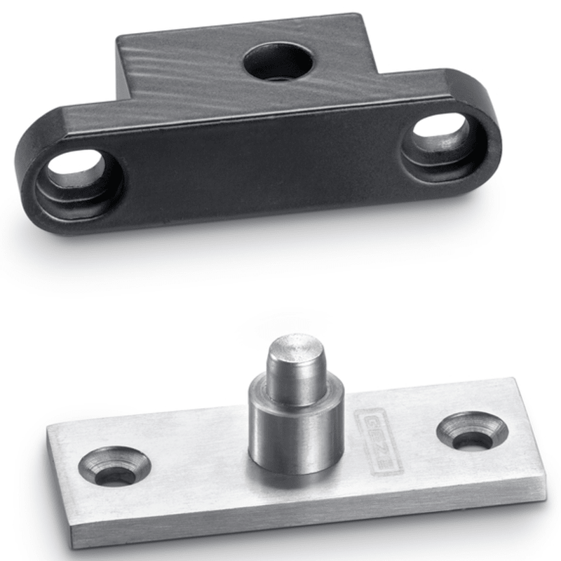 GEZE Bodendrehlager Patch Fittings DL-RD; Ausführung: für Eckbeschläge; Basis: Bodendrehlager; Türwerkstoff: Glas; Einsatzbereich: Objekttür; Farbton: edelstahl; Ausführung Bolzen: mit Rundbolzen