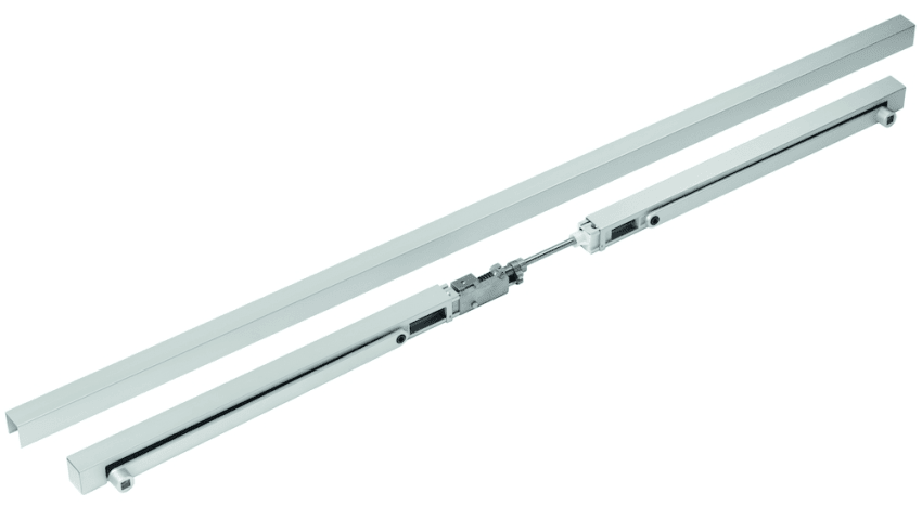 DORMA, Objekttür-Gleitschiene, Ausführung: für Oben-Türschließer, Modell: G-GSR/VL, Material: Edelstahl, Farbton: edelstahlfarbig, Oberfläche: matt, Ergänzung: mit Schubstangenklemmsystem, Befestigung