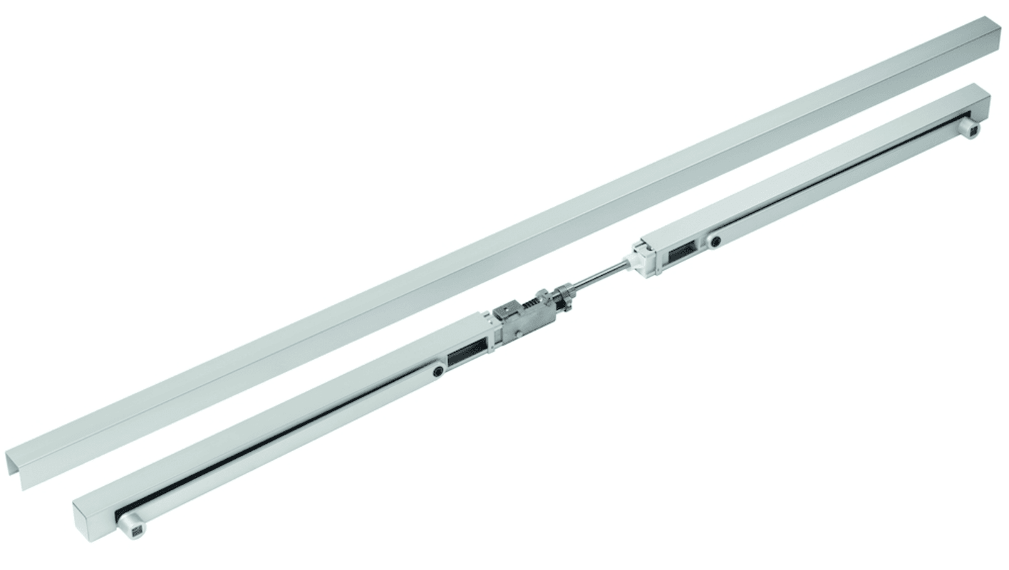 DORMA, Objekttür-Gleitschiene, Ausführung: für Oben-Türschließer, Modell: G-GSR/VL, Material: Edelstahl, Farbton: edelstahlfarbig, Oberfläche: matt, Ergänzung: mit Schubstangenklemmsystem, Befestigungsart: aufliegend, DIN-Richtung: DIN Links-Rechts, Montageart: Türblattmontage Bandseite, Türbreite min.: 2500 mm, Türbreite max.: 3200 mm, Funktion: Gleitschienenschließfolgeregler, Türart: Abschlusstür, Türflügelanzahl: einflügelig, zweiflügelig, Türausprägung: Türe gefälzt, Türe stumpf, Norm: EN 1158, Zusatzinformation: komplett
