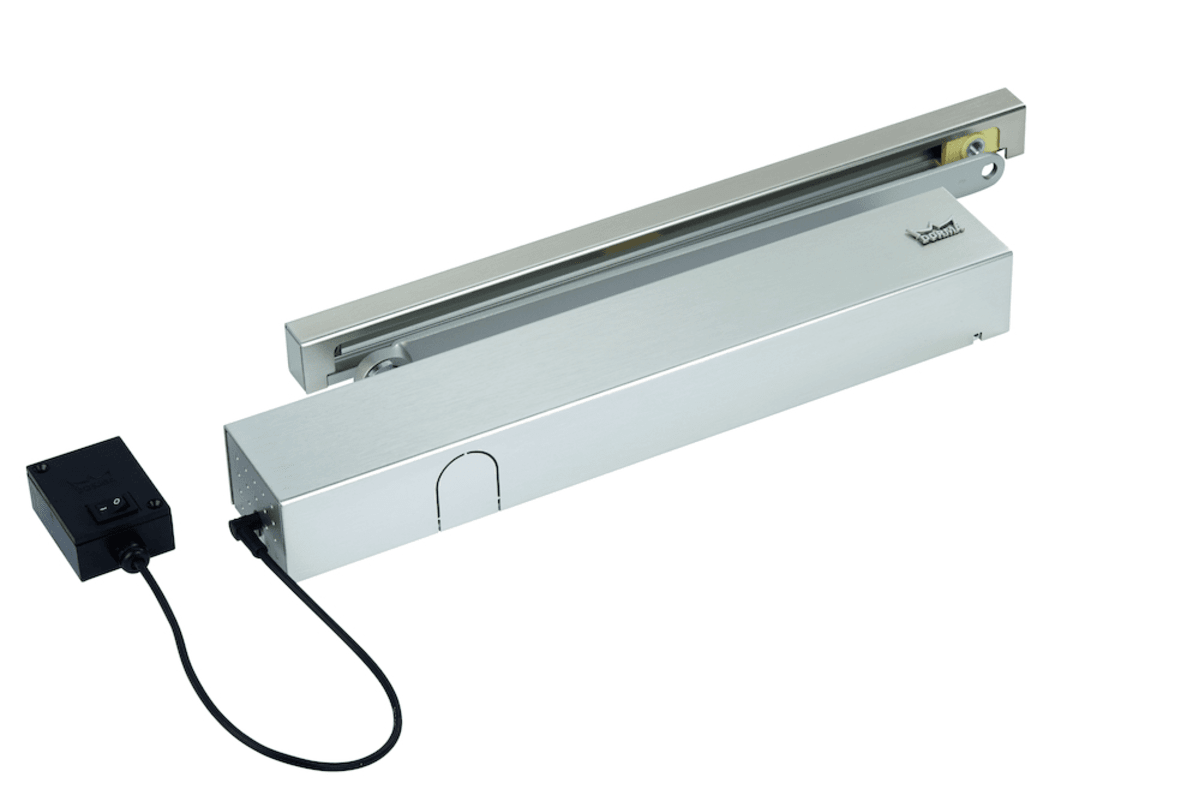 DORMA, Objekttür-Oben-Türschließer, Ausführung: mit Freilaufgleitschiene, Größe: EN 2-5, Modell: TS 99 FL, DIN-Richtung: DIN Links-Rechts, Material: Edelstahl, Farbton: edelstahl, Oberfläche: rostfrei, Türflügelanzahl: einflügelig, Öffnungswinkel: 180 °, Norm: EN 1155, EN 1154, Ergänzung: mit Schließkraft, mit Schließgeschwindigkeit, mit Endschlag, Befestigungsart: aufliegend, Montageart: Türblattmontage Bandseite, Schließerbreite: 413 mm, Schließerhöhe: 71 mm, Schließertiefe: 52 mm, Türbreite max.: 1250 mm, Eingangsspannung: 24 V, Stromart Eingangsspannung: DC, Leistungsaufnahme: 2 W, Funktion: Freilauffunktion, Türart: Drehflügeltür, Feuerschutztür, Rauchschutztür, Türausprägung: Türe gefälzt, Türe stumpf