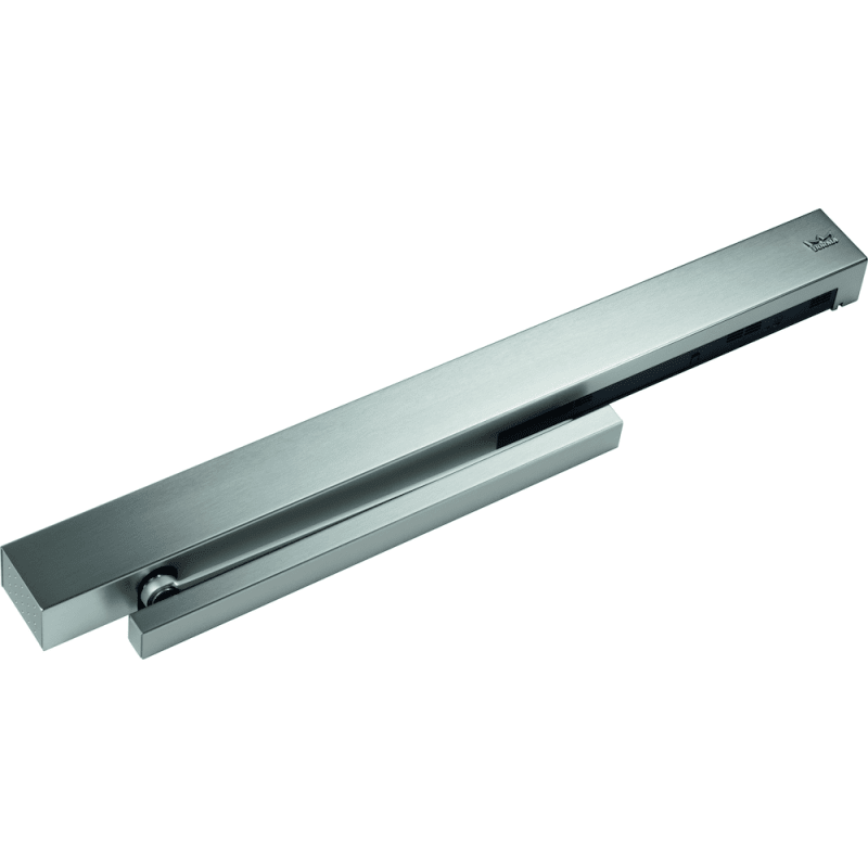DORMA, Objekttür-Oben-Türschließer, Ausführung: mit Freilaufgleitschiene, Größe: EN 2-5, Modell: TS 99 FLR, DIN-Richtung: DIN Links-Rechts, Material: Edelstahl, Farbton: edelstahl, Oberfläche: rostfrei, Türflügelanzahl: einflügelig, Öffnungswinkel: 180 °, Norm: EN 1155, EN 1154, EN 54 Teil 7, Ergänzung: mit Schließkraft, mit Schließgeschwindigkeit, mit Endschlag, mit integriertem Netzteil, mit integriertem Rauchmelder, Befestigungsart: aufliegend, Montageart: Sturzmontage Bandseite, Schließerbreite: 785 mm, Schließerhöhe: 71 mm, Schließertiefe: 52 mm, Türbreite max.: 1250 mm, Eingangsspannung: 230 V, Stromart Eingangsspannung: AC, Betriebsspannung: 24 V, Stromart Betriebsspannung: DC, Leistungsaufnahme: 14,8 W, Schutzart: IP 20, Funktion: Freilauffunktion, Türart: Drehflügeltür, Feuerschutztür, Rauchschutztür, Türausprägung: Türe gefälzt, Türe stumpf