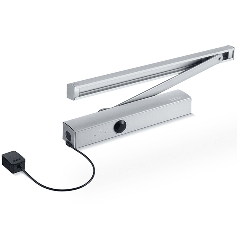 Stufenlos von vorn einstellbare Schließkraft. Optische Größenanzeige der Schließkraft sorgt für die richtige Einstellung. Schließgeschwindigkeit über Ventil von vorn einstellbar. Endschlag über Ventil von vorn einstellbar. Elektrische Freilauffunktion. Türschließer für rechts und links angeschlagene Türen verwendbar. Versorgungsspannung 24 V DC. Anwendungsbereiche: Feuer- und Rauchschutztüren. Rechte und linke Anschlagtüren. Anschlagtüren bis 1400 mm Flügelbreite. Türblattmontage Bandseite und Kopfmontage Bandgegenseite. Feststellanlagen mit integrierter Feststellung mit Freilauf. Barrierefreie Zugänge nach DIN 18040.