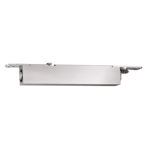 Der integrierte Türschließer Boxer für einflügelige Türen ist vollständig im Türblatt eingebaut. Die Gleitschiene ist nur bei geöffneter Tür sichtbar. Die Schließkraft gemäß DIN EN 1154, die Schließge