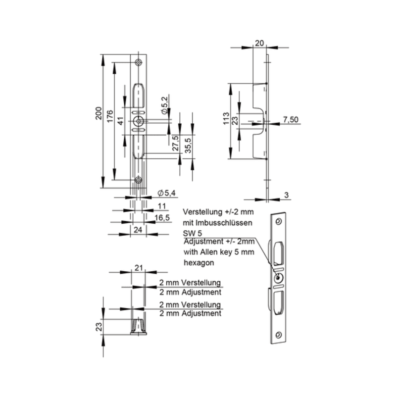 Schließblech für die Nebenverriegelungen der Serie 8000