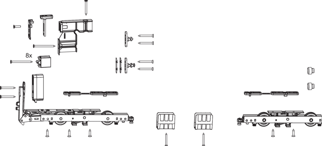 Packung Laufwagen Nut 22 x 42 HS Kunststoff Schüco Thermo-Slide mit Zubehör 300kg Silber