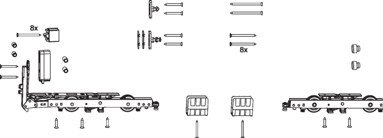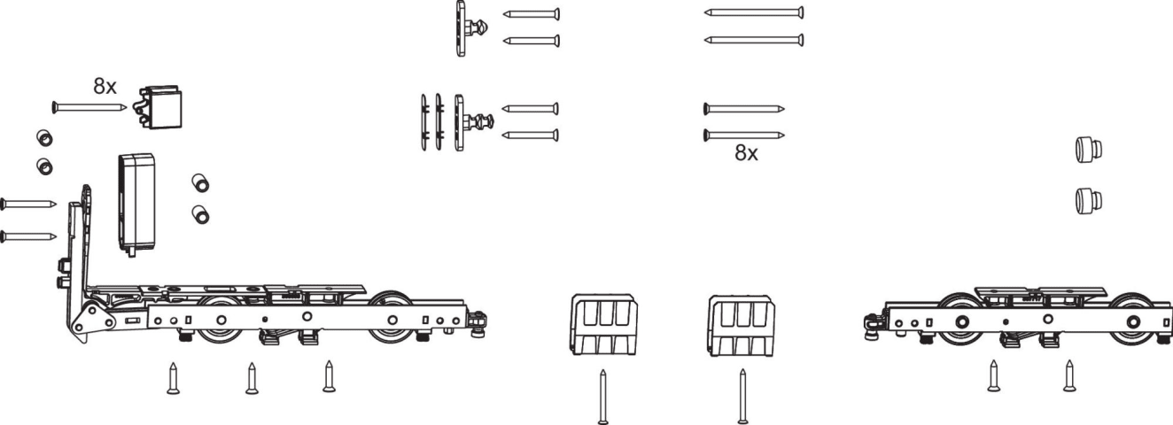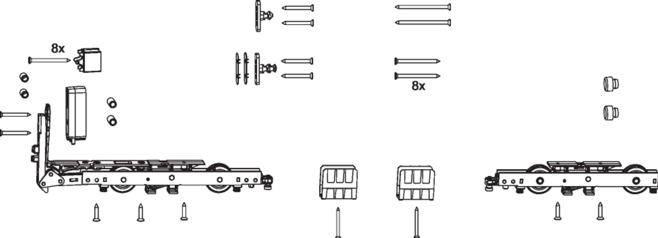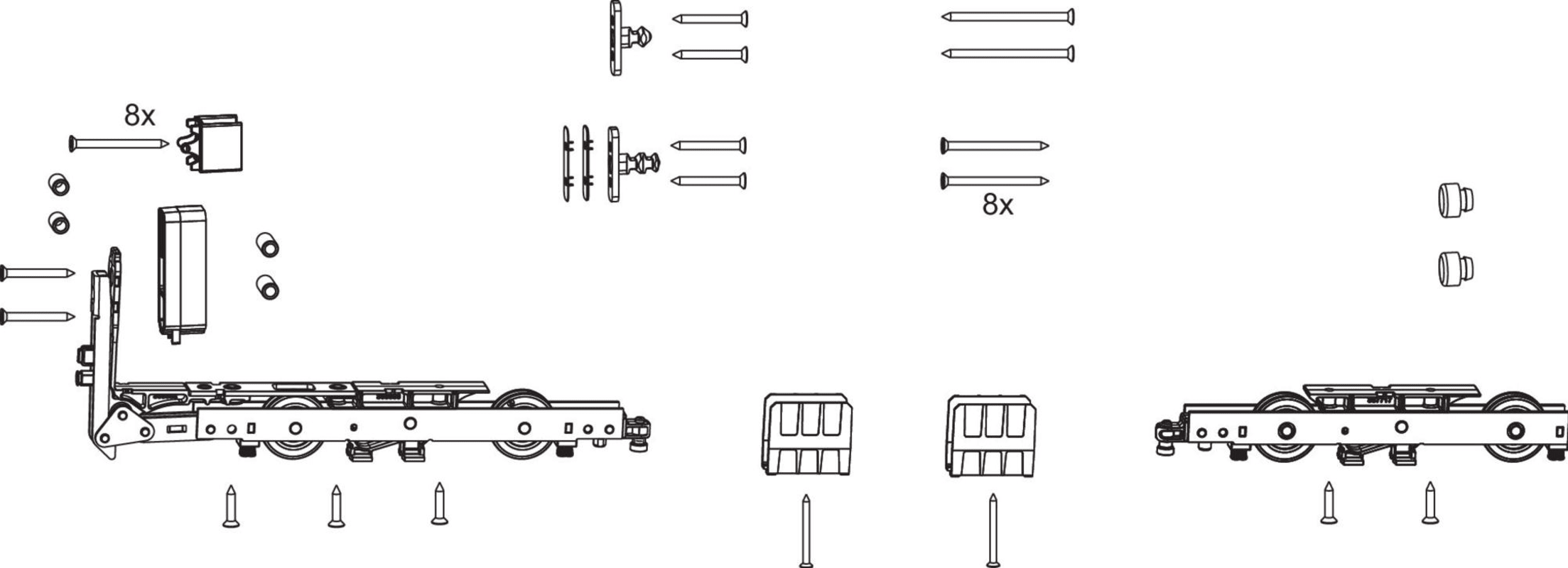 Packung Laufwagen Nut 22 x 42 HS Kunststoff Veka Slide mit Zubehör 300kg Silber