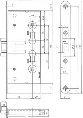 KFV Panik-Einsteckschloss PES EE180.1-D; Produkttyp: Panik-Einsteckschloss; Produkttyp (Hersteller): Einsteckschloss; Ausführung: mechanisch; Verriegelung: manuell; Drückernuss: einteilig; Stulpform: