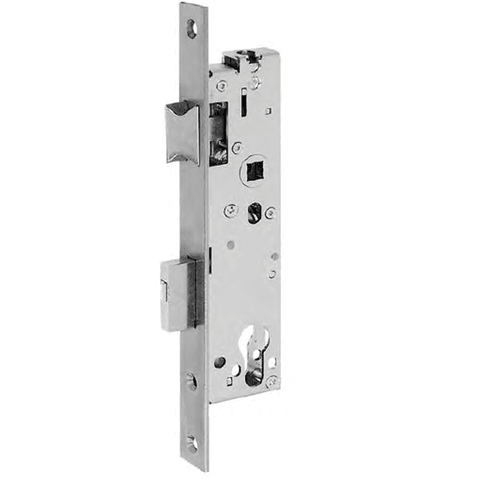 Anti-Panik-Einsteckschloss für zweiflügelige Rohrrahmentüren • für Profilzylinder vorgerichtet • ganz verzinkt • Nuss einteilig • mit Wechsel • Falle umlegbar • 1 Tour = 15 mm • Riegelausschluss