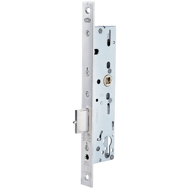 BKS, Objekttür-Panik-Riegelschloss, Lochung: Profilzylinder gelocht, Dornmaß: 35 mm, Entfernung: 92 mm, Drückernussvierkant: 9 mm, Stulpbreite: 24 mm, Stulpausführung: kantig, Stulplänge: 270 mm, Stulpstärke: 3 mm, Stulpform: Flachstulp, Stulpeigenschaft: beidseitig überstehend, Modellnummer: B-1849, Wechsel: mit Wechsel, DIN-Richtung: DIN Links-Rechts, Einzelteilmaterial Stulp: Edelstahl, Farbton Stulp: edelstahl, Oberfläche Stulp: matt, Türausprägung: Türe stumpf, Schlossriegel: 1 tourig, Funktion Anti Panik: Riegelfunktion P, Ergänzung: Gangflügel, Anschlagrichtung: Links Auswärts, Rechts Auswärts, Riegelausschluss: 20 mm, Funktion: Panikfunktion, Türart: Fluchtwegtür, Rohrrahmentür, Türflügelanzahl: zweiflügelig, Türwerkstoff: Aluminium, Stahl, Einzelteilmaterial Riegel: Zinkdruckguss, Riegeleigenschaft: Standard, Drückernuss: Spezialnuss, Einzelteilmaterial Drückernuss: Stahl, Schlosskasten: offen, Einzelteilmaterial Schlosskasten: Stahl, Oberfläche Schlosskasten: verzinkt, Schlosskastenlänge: 202 mm, Schlosskastenbreite: 47 mm, Schlosskastenstärke: 15,5 mm, Norm: EN 179 (Notausgangsverschlüsse)