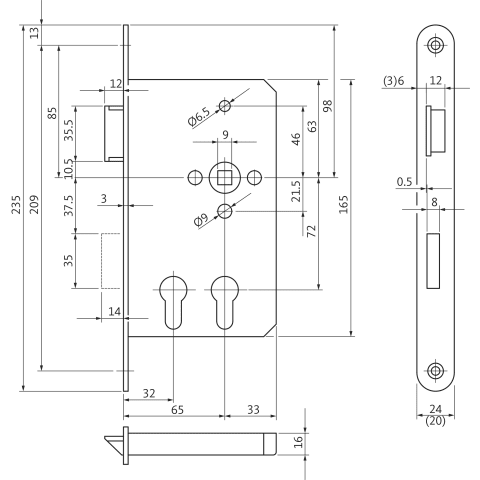 Meesenburg Artikelbezeichnung: PANIKSCHLOSS 2328/32/65 MM PZ 72 MM ST.20MM DL ABGER. FKT.E NIRO B 2328 0001
