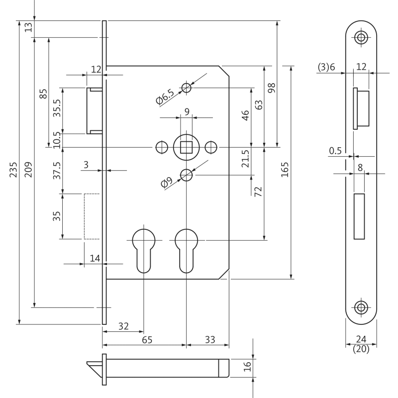 Meesenburg Artikelbezeichnung: PANIKSCHLOSS 2328/32/65 MM PZ 72 MM ST.24MM DR ABGER. FKT.E NIRO B 2328 0006
