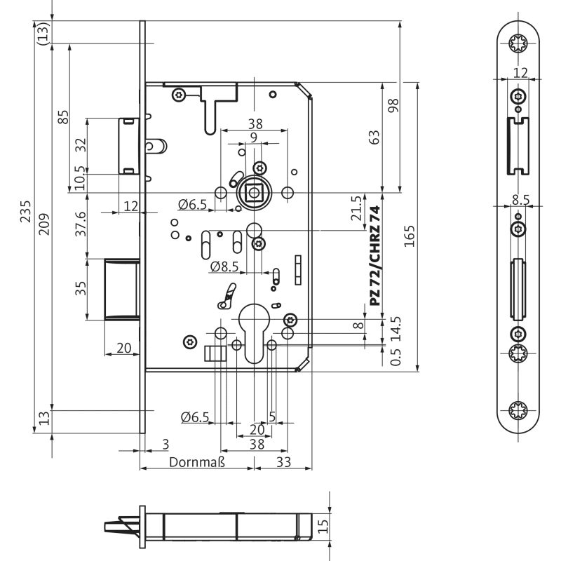 BKS PA-Einsteckschloss B-23220,PZ72/9,D60,F24x235rd,ER,PAF-C