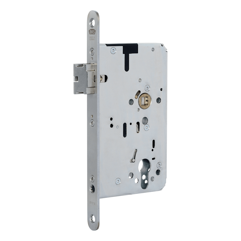 BKS Objekttür Selbstverriegelndes-Panik-Einsteckschloss, Lochung: Profilzylinder gelocht, Dornmaß: 60 mm, Entfernung: 72 mm, Entfernung: 72, Drückernussvierkant: 9, Drückernussvierkant: 9 mm, Modellnummer: B-2117, DIN-Richtung: DIN Links, Einzelteilmaterial Stulp: Edelstahl, Stulpbreite: 20 mm, Stulpausführung: rund, Stulpstärke: 3 mm, Stulpform: Flachstulp, Stulpeigenschaft: beidseitig überstehend, Farbton Stulp: edelstahl, Oberfläche Stulp: matt, Ausführung: automatisch, Wechsel: mit Wechsel, Funktion Anti Panik: Wechselfunktion E, Funktion: Panikfunktion, Türart: Paniktür, Fluchtwegtür, Türflügelanzahl: zweiflügelig, Türausprägung: Türe gefälzt, Türwerkstoff: Holz, stahl, Einzelteilmaterial Falle: stahl, Falleneigenschaft: mit gesicherter Fallenfeststellung, Fallenausschluss: 20 mm, Falle vorstehend: 12 mm, Einzelteilmaterial Riegel: ohne, Riegeleigenschaft: ohne Riegel, Drückernuss: Klemmnuss, Einzelteilmaterial Drückernuss: stahl, Schlosskasten: geschlossen, Einzelteilmaterial Schlosskasten: stahl, Oberfläche Schlosskasten: verzinkt, Schlosskastenlänge: 165 mm, Schlosskastenbreite: 90 mm, Schlosskastenstärke: 15 mm, Norm: DIN 18250, DIN EN 1125, DIN EN 179, Anschlagrichtung: Links Auswärts, Zulassung: für Feuerschutz, für Rauchschutz, für Notausgang