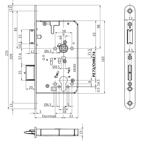 BKS PA-Einsteckschloss B-23230,PZ72/9,D65,F20x235rd,ER,PAF-C,DL ausw.