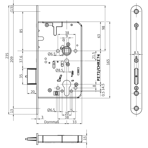 BKS Panik-Riegelschloss B-23490,PZ72/9,D80,F20x235rd,ER,DR