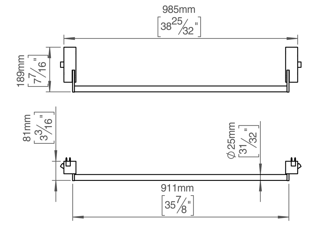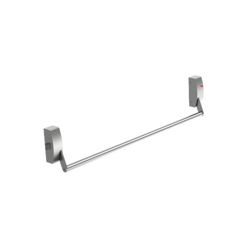 Knud Holscher Kollektion, Paniktürverschluss, Einpunktverriegelung, 1 hor. Riegel, 950mm Schubstange. Hergestellt aus hochwertigem, rostfreiem Edelstahl AISI 316, der vor starker Korrosion schützt. Zertifiziert nach EN 1125 bis 377B1422AA. Feuergeprüft nach EN 1634. 20 Jahre Garantie.