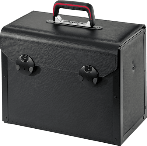Schubladentasche TOP-LINE• Rindleder, besonders dick • Werkzeugtafel aus Con-Pearl® • Feuchtigkeits- und chemikalienbeständig • Vorderwand aufklappbar • Rückwand mit CP-7-Werkzeughalter Ø 15 mm •
