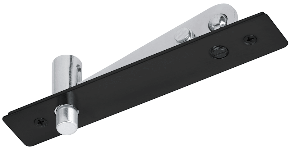 Patch Fitting Rahmenteil oben verstellbar, mit 13 mm Ø Stift und passender Hülse, passend zu 6735 Türband oben, mit 4 Schrauben M5 x 25 mm, Oberfl. 74 (Classic Black, ähnl. RAL 9005)