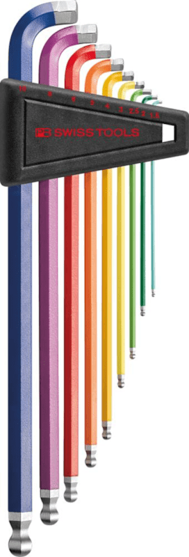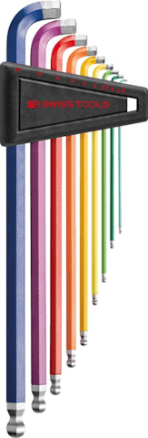 Winkelschraubendreher-Satz für 6-kant-Schrauben, mit Kugelkopf, mit Farbcodierung, lang, Nr. PB 2222• Hochlegierter Federstahl, durchgehend gehärtet, verchromt und pulverbeschichtet • Mit Kugelkopf u