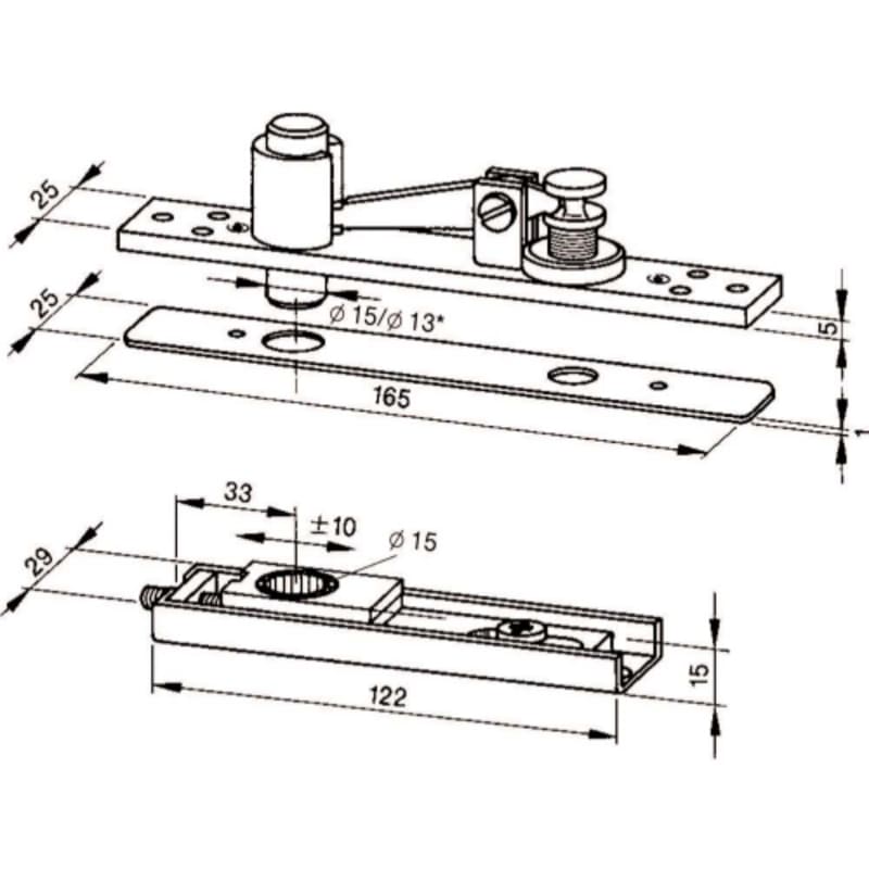 Bestehend aus Oberteil mit verstellbarem Bolzen zur Überbrückung von Kammermaßen bis max. 16 mm und Unterteil mit Nadellager.