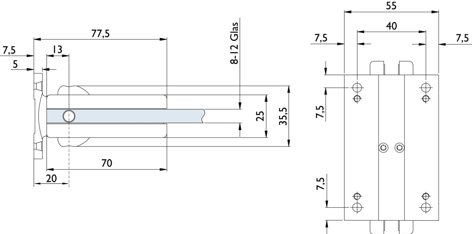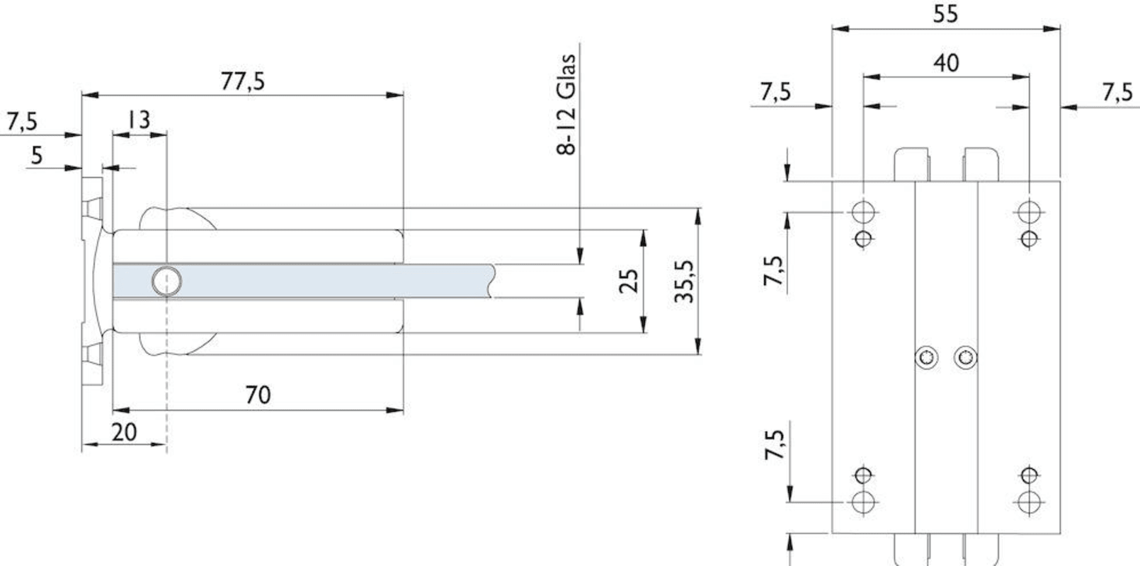 Pendeltürband für Glastüren 6851 G-W, zur Befestigung Glas/Wand, Set à 2 Stück, Extra starke Ausführung, Oberfl. 20 (Mattnickel)
